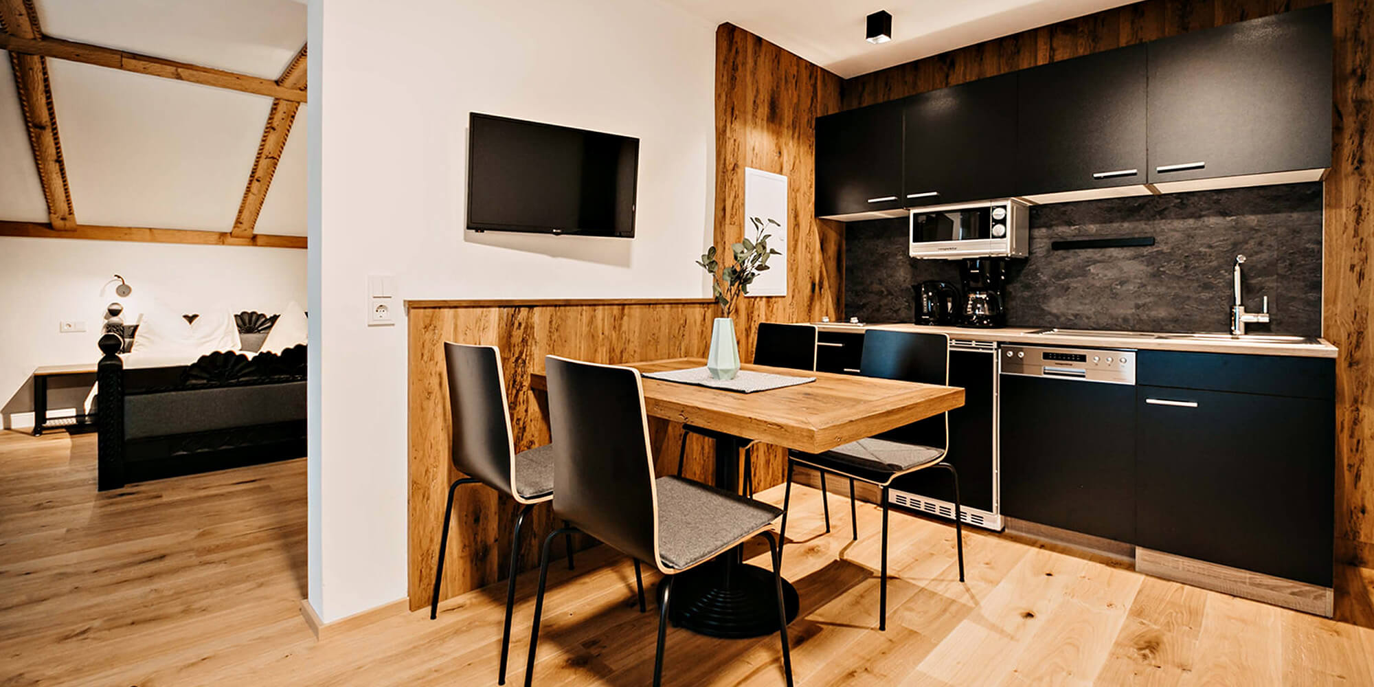 Alle neu gestalteten Studios bieten eine moderne Einrichtung mit Küche, gemütlicher Sitzmöglichkeit und genug Platz für einen enspannten Urlaub. Sie genießen die absolute Privatsphäre mit eigenem Balkon mit Sitzgelegenheiten.
